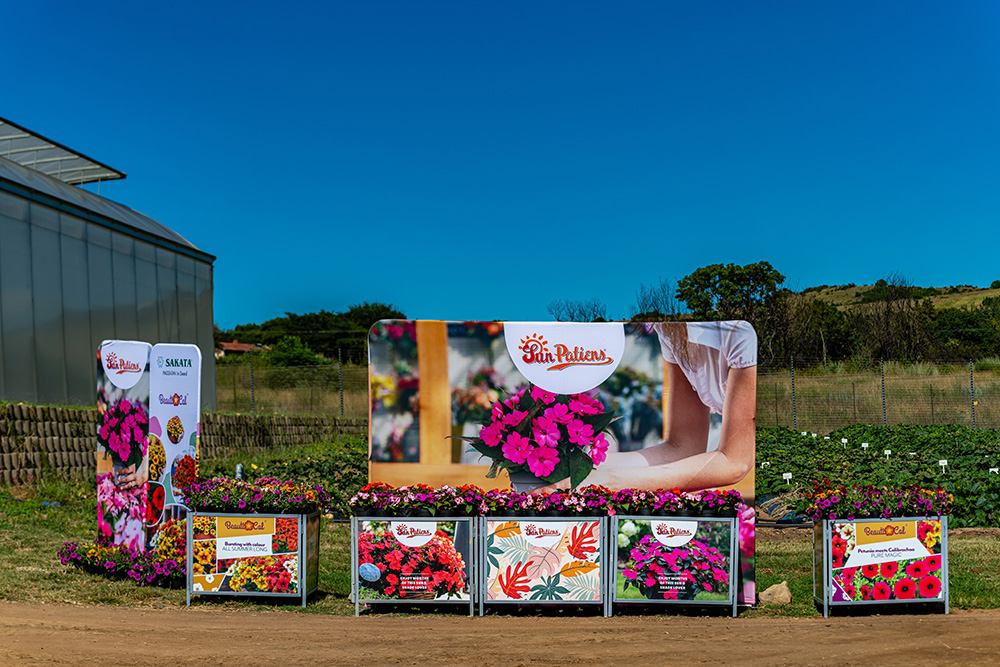 A vibrant display of SunPatiens, Beauticals, sunflowers and marigold cut flowers highlighted the beauty and breadth of Sakata genetics beyond the field.Â